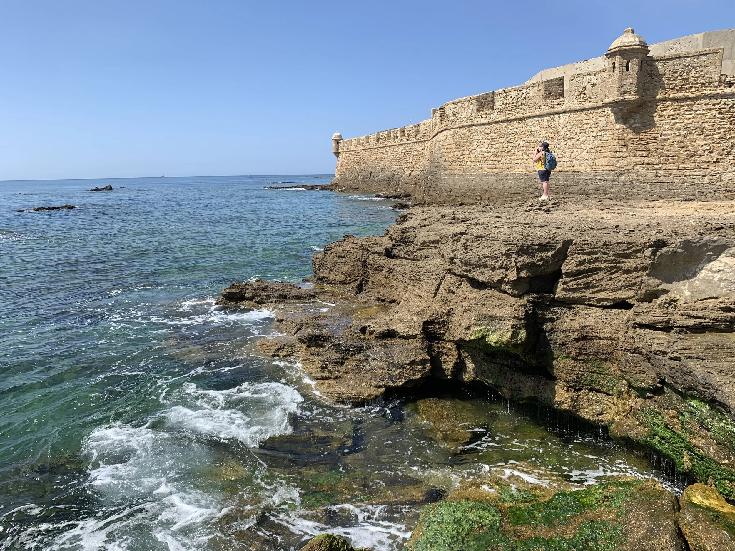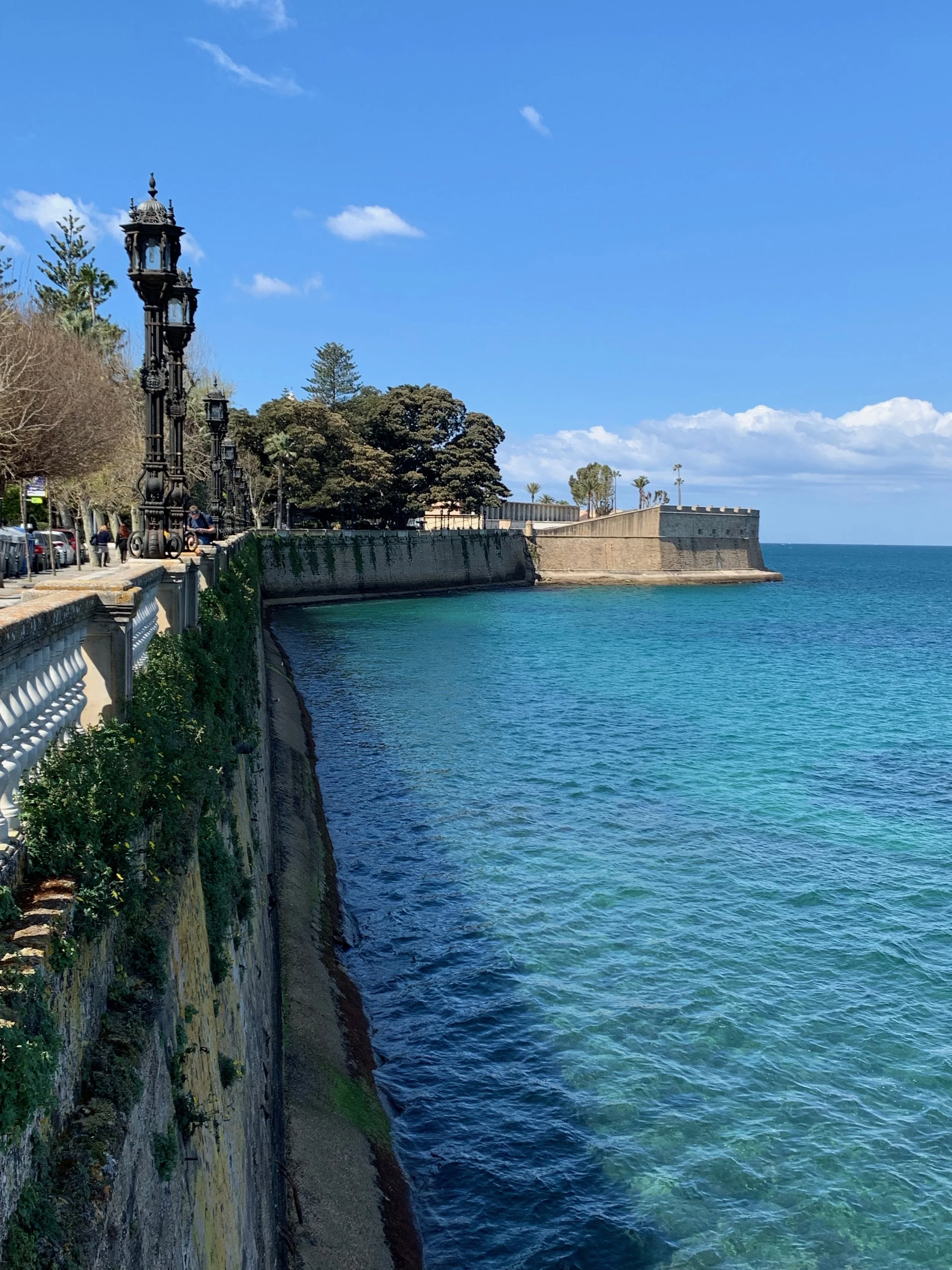 The charm of Cádiz is the sea views. Like the famed mullet, Cádiz is business in the front and party in the back. From the unattractive commercial seaport that you see right out of the train station, it only gets better as you continue on around to the western side of Cádiz: the historic bastions, walled castles, the majestic profile of the Cathedral looming over the stunning sea wall views of the bay, the beauty of parks and ancient trees, and of course, the beaches!